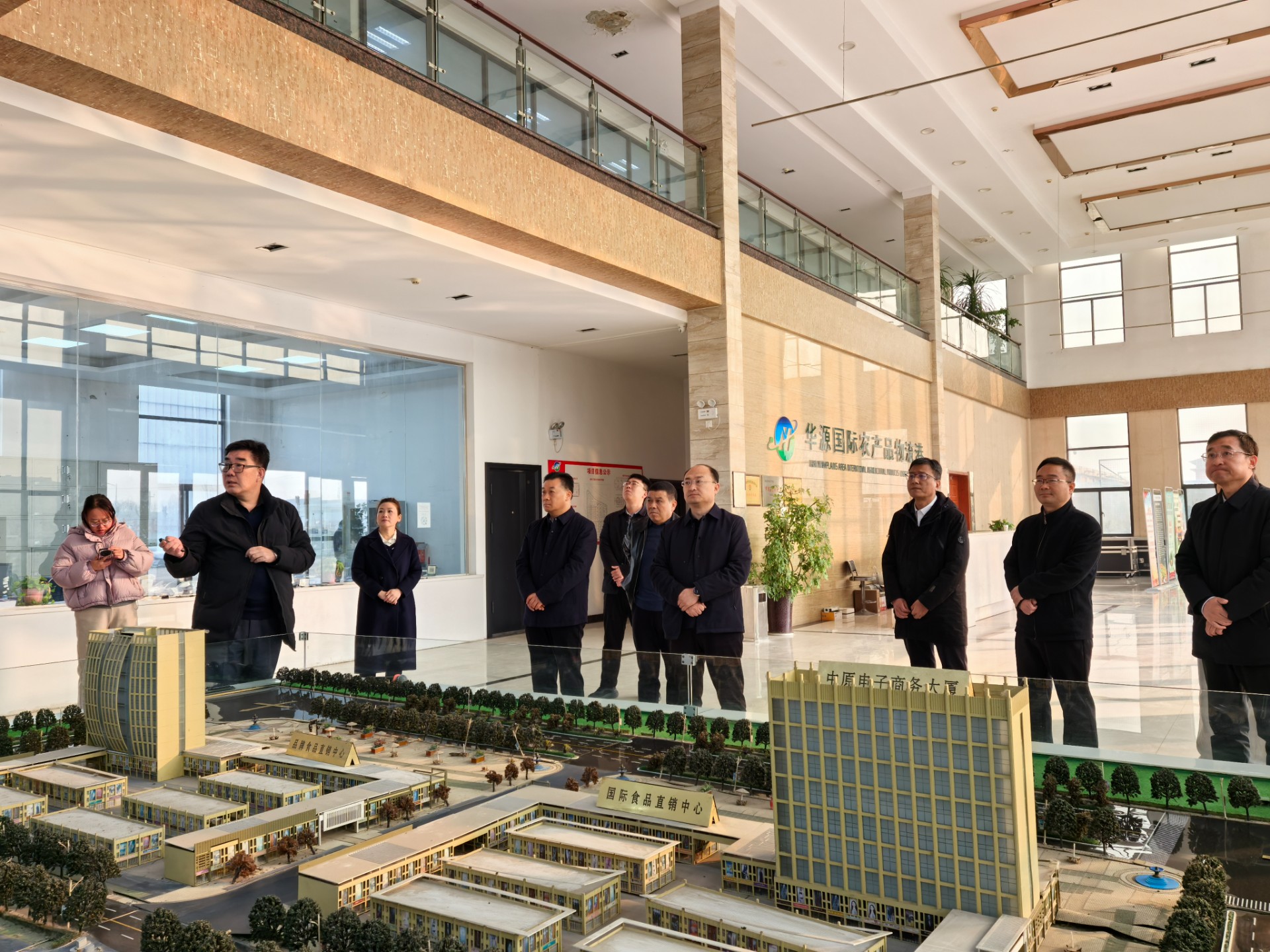 河南省乡村商贸物流产业联盟理事长沈东山、秘书长李霞,棕榈豫资商业发展有限公司副总经理裘雪刚等一行,赴华源国际农产品物流港开展实地调研并召开现场座谈会。